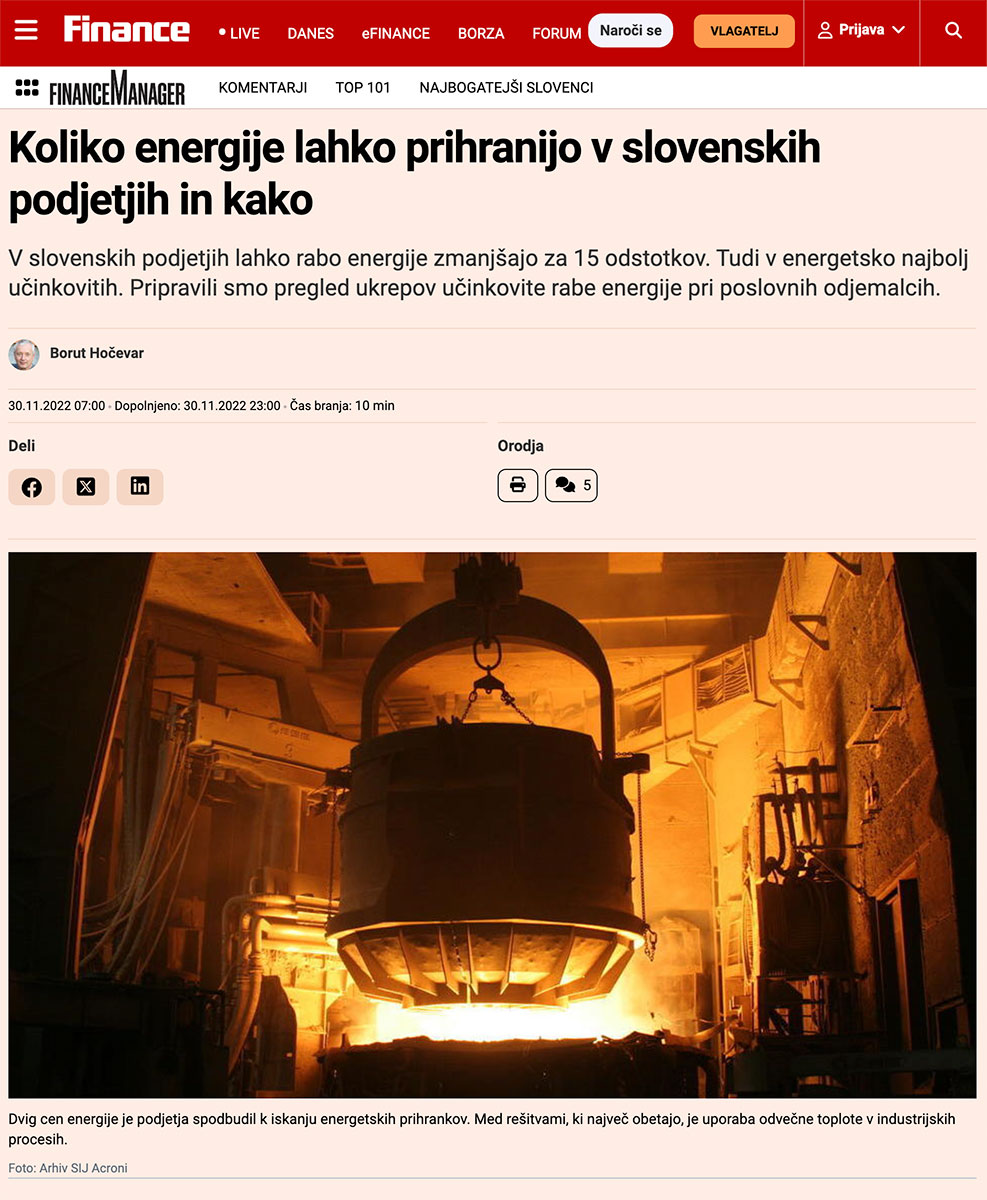 Dvig cen energije je podjetja spodbudil k ponovnemu razmisleku o rabi energije in iskanju novih priložnosti za prihranke. Po besedah Gregorja Kusteca se je pogled na rabo energije v podjetjih v zadnjem letu bistveno spremenil.